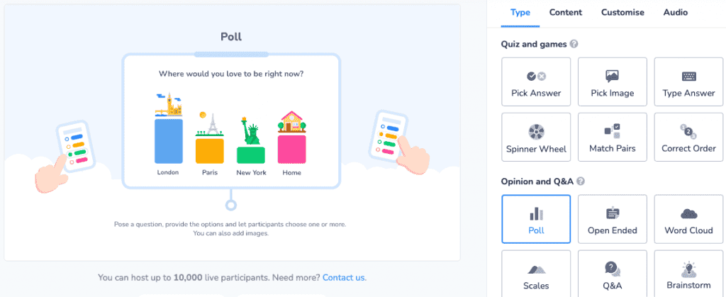 Ahaslides is a versatile presentation tool that can be suitable for both small and large groups.